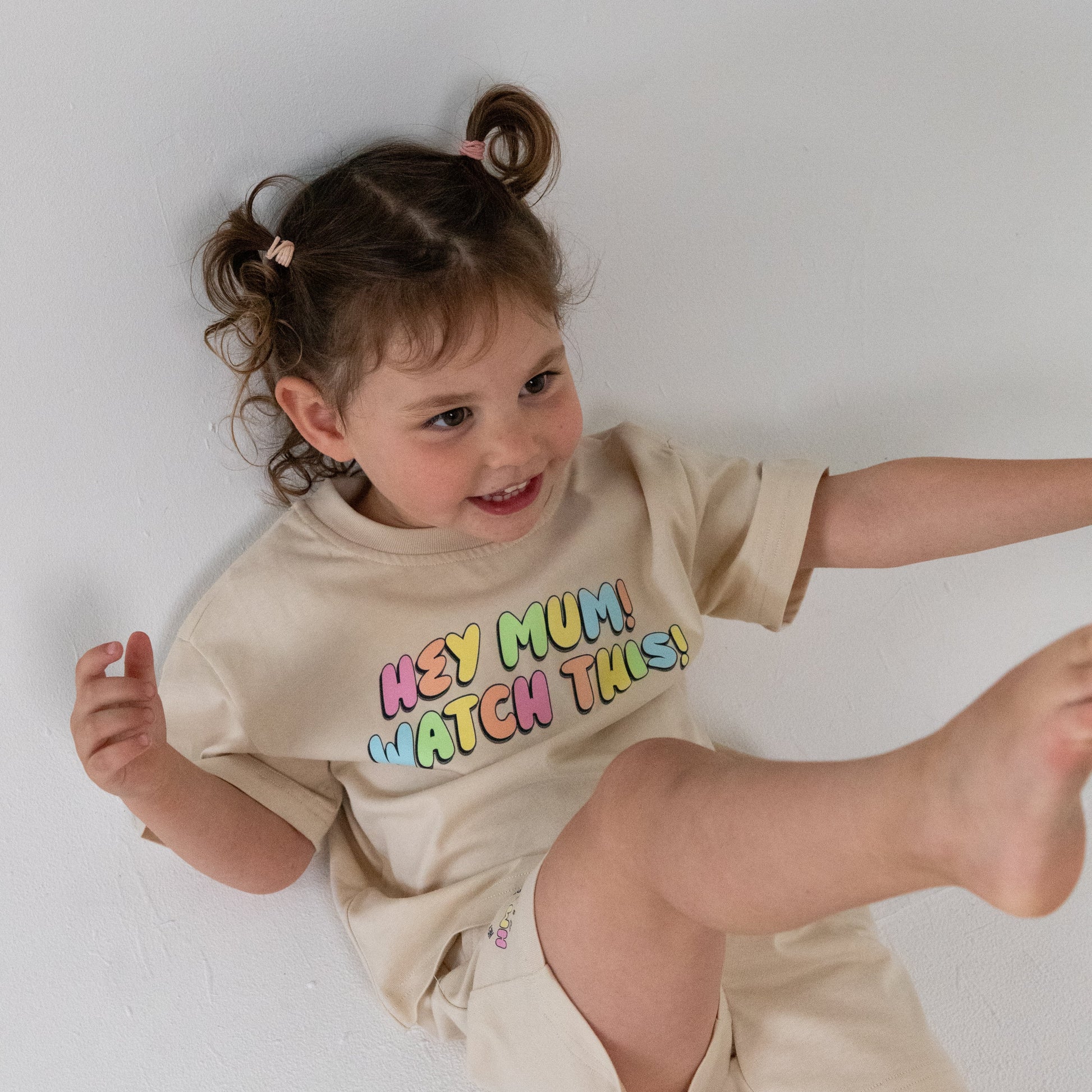 Available in 4 colour ways, mix and match with the Flynn short for an epic look. Perfect for all kids who love to have fun and stay comfortable. Get ready to hear Hey Mum! Watch This!® in style!